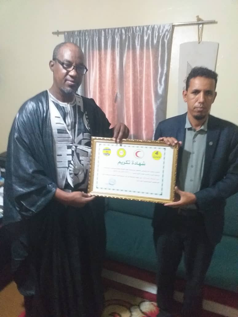 وقد سلم السيد سليمان عباس، ممثل الهيئات المذكورة ، التكريم ، للسيد، عزيز ولد الصوفي، نائب نقيب الصحفيين .