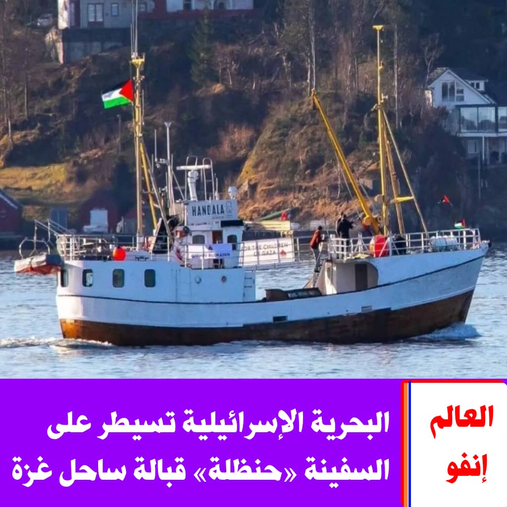 أعلنت إسرائيل اعتراض السفينة «حنظلة» المتجهة إلى قطاع غزة والسيطرة عليها واقتيادها إلى أحد الشواطئ الإسرائيلية.