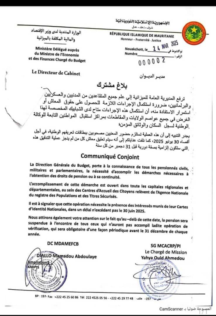 ألزمت المديرية العامة للميزانية جميع المتقاعدين من المدنيين والعسكريين والبرلمانيين بضرورة استكمال الإجراءات اللازمة للحصول على حقوق المعاش واستمرار الاستفادة منه.