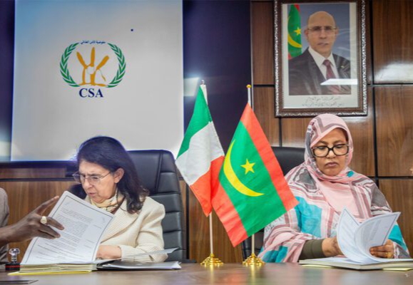 أشرفت مفوضة الأمن الغذائي السيدة فاطمة بنت خطري، رفقة سفيرة جمهورية إيطاليا المعتمدة لدى بلادنا السيدة لورا بوتا، اليوم الثلاثاء في نواكشوط على توقيع اتفاقية مشروع دعم الصمود الغذائي في وسط وشرق موريتانيا، بتمويل من التعاون الإيطالي.