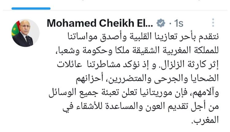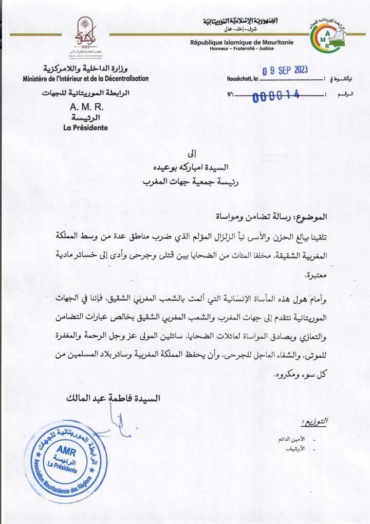 الرابطة الموريتانية للجهات تعزي نظيرتها المغربية في ضحايا الزلزال