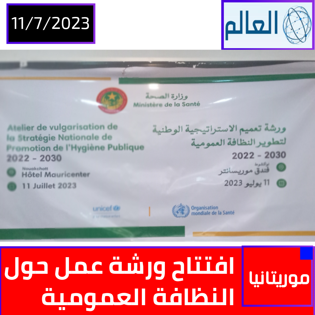 نواكشوط 11 يوليو 2023 (العالم) افتتحت اليوم الثلاثاء بنواكشوط أعمال ورشة عمل حول النظافة العمومية باعتبارها هدفا رئيسبا للحد من الأمراض.