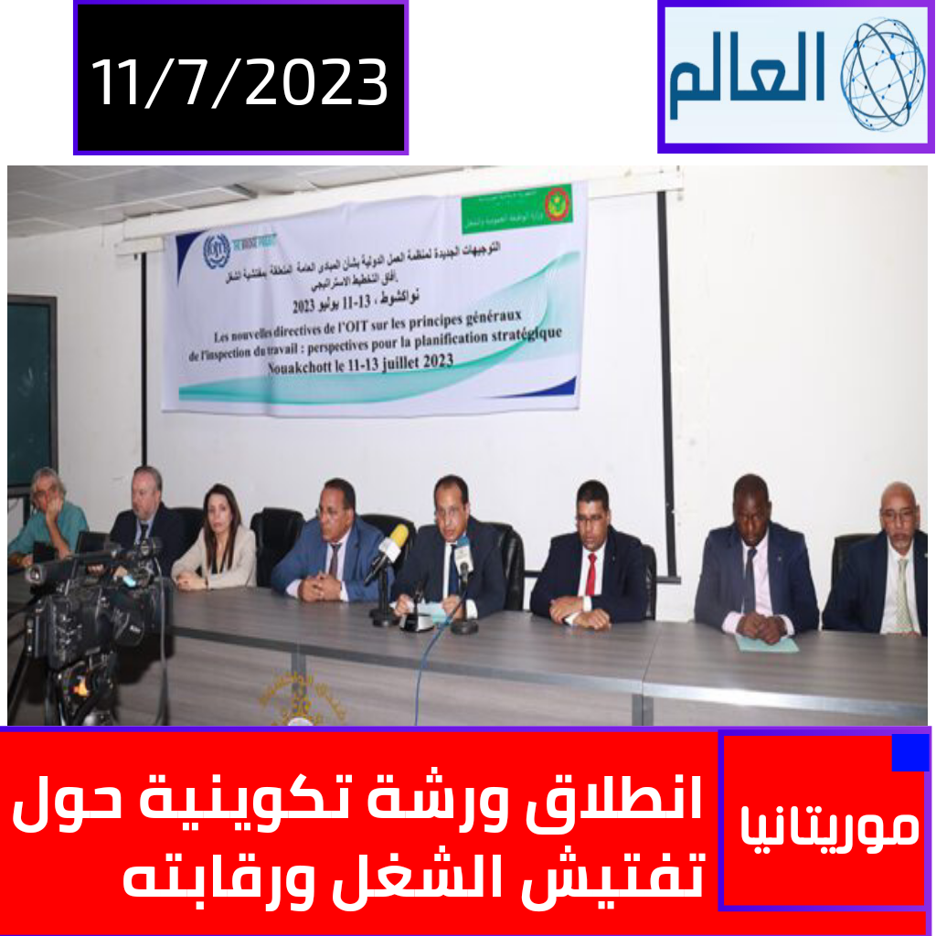 انطلقت اليوم الثلاثاء في انواكشوط أعمال ورشة تكوينية حول تفتيش الشغل ورقابته، لصالح 40 مفتشا للشغل ومسؤولين في القطاعات ذات الصلة، منظمة من طرف وزارة الوظيفة العمومية والعمل بالتعاون مع المكتب الدولي للشغل في موريتانيا.
