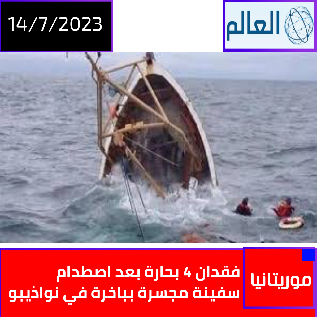 العالم (نواذيبو)- أعلن فجر اليوم عن فقدان 4 بحارة موريتانيين بعيد اصطدام السفينة المجسرة التي كانوا على متنها بإحدى البواخر في المياه الموريتانية،