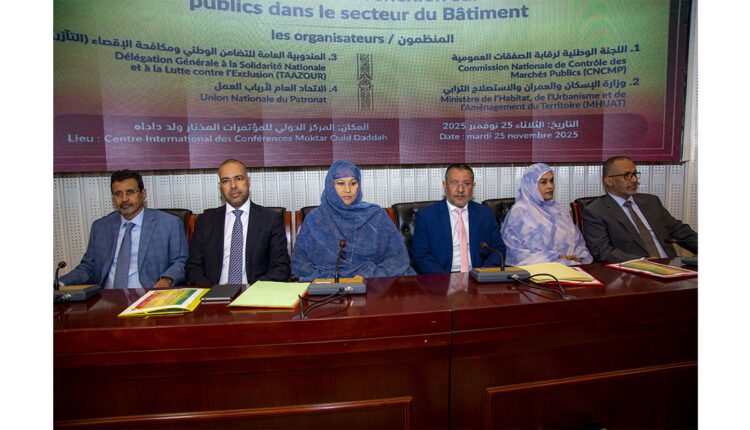 نظمت اللجنة الوطنية لمراقبة الصفقات العمومية، بالشراكة مع قطاعات الإسكان والعمران والاستصلاح الترابي، والمندوبية العامة للتضامن الوطني ومكافحة الإقصاء (التآزر)، والاتحاد العام لأرباب العمل الموريتانيين، يوما مفتوحا للتبادل والتفكير حول الصفقات العمومية في قطاع البناء.