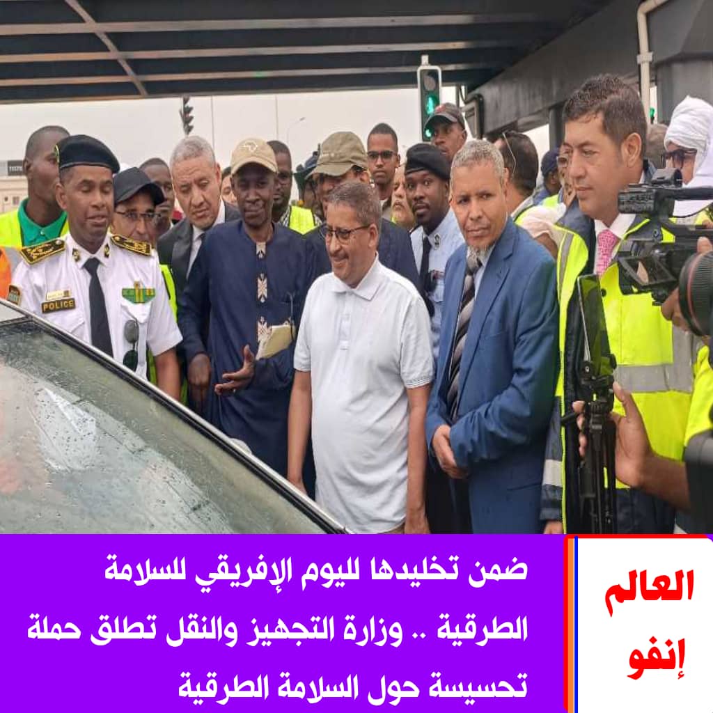 أعطى معالي وزير التجهيز والنقل، السيد أعل ولد الفيرك، اليوم الأحد من جسر الصداقة في نواكشوط، إشارة الانطلاقة الرسمية للفرق الميدانية المكلّفة بتنفيذ حملة واسعة للتحسيس حول السلامة الطرقية، تشمل مختلف منافذ العاصمة نواكشوط، بمشاركة فرق فنية ومتخصصين في التوعية.